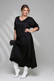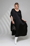 Стильное платье из мягкого струящегося материала. Модель имеет U-образный вырез. Цельнокроеные рукава длиной 3/4 присобраны по низу хлястиками. Линия талии, по желанию, можно подчеркнуть оригинальным поясом. Свободный силуэт и мягкий материал искусно обыгрывают фигуру и дарят комфорт в течение всего дня. Небольшие разрезы по бокам обеспечивают оптимальную посадку по фигуре. Платье создано для того, чтобы подчеркивать достоинства и скрывать недостатки. Стильный клатч и туфли на каблуках станут идеальным дополнением к нарядному образу. (Пояс в комплект не входит)
