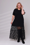 Платье однотонное с гипюровой юбкой в цветочный узор черное